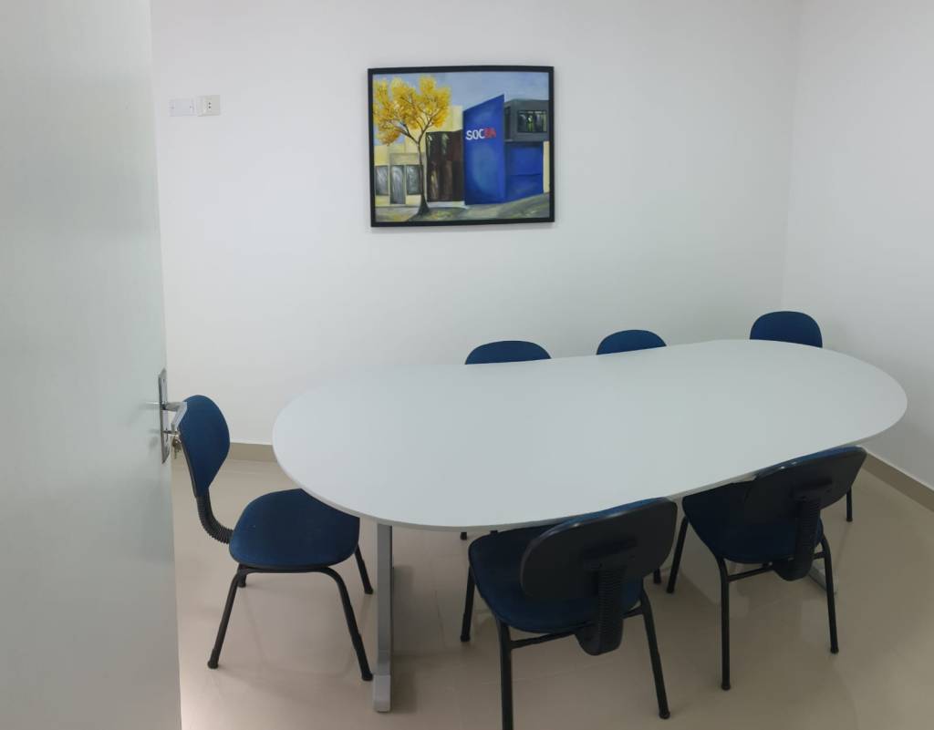Gracias a la tecnología, los colaboradores pueden trabajar en línea y realizar reuniones virtuales. Socra Business Center también ofrece una Sala de Reuniones para hasta 6 personas con alquiler por hora que sirve para las inevitables reuniones presenciales con grupos de trabajo, para firma de documentos, entre otros.